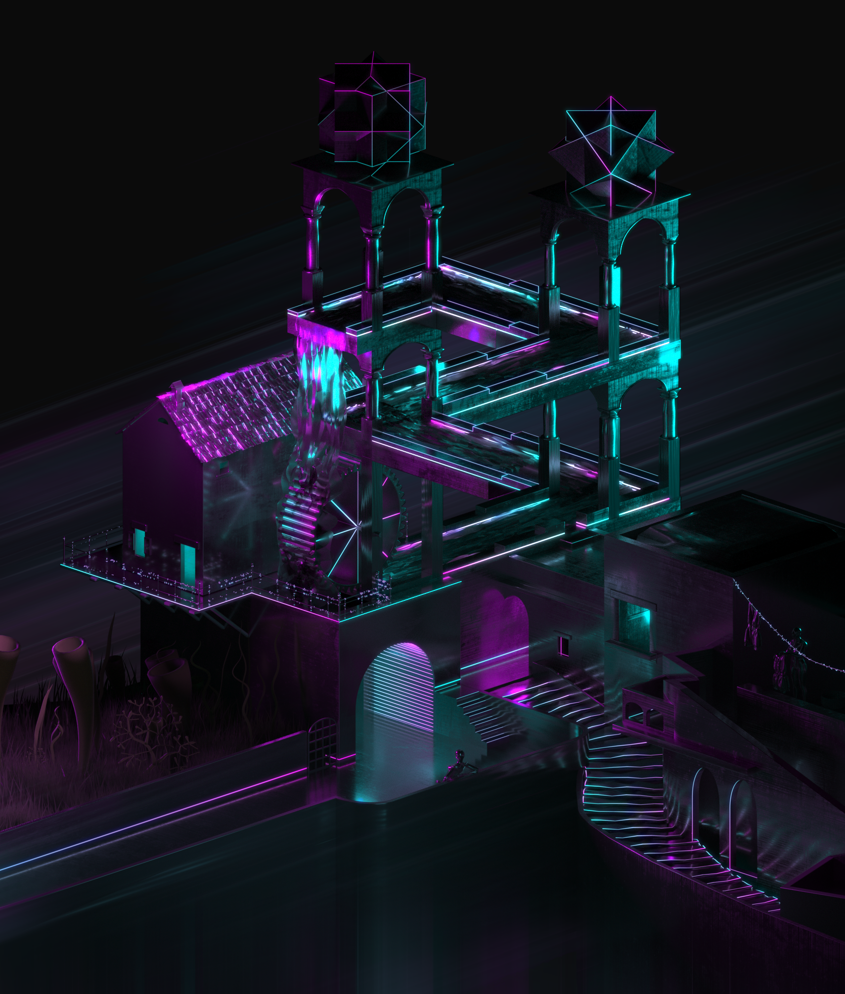 A 80's kind of interpretation of M.C. Escher's Waterfall.